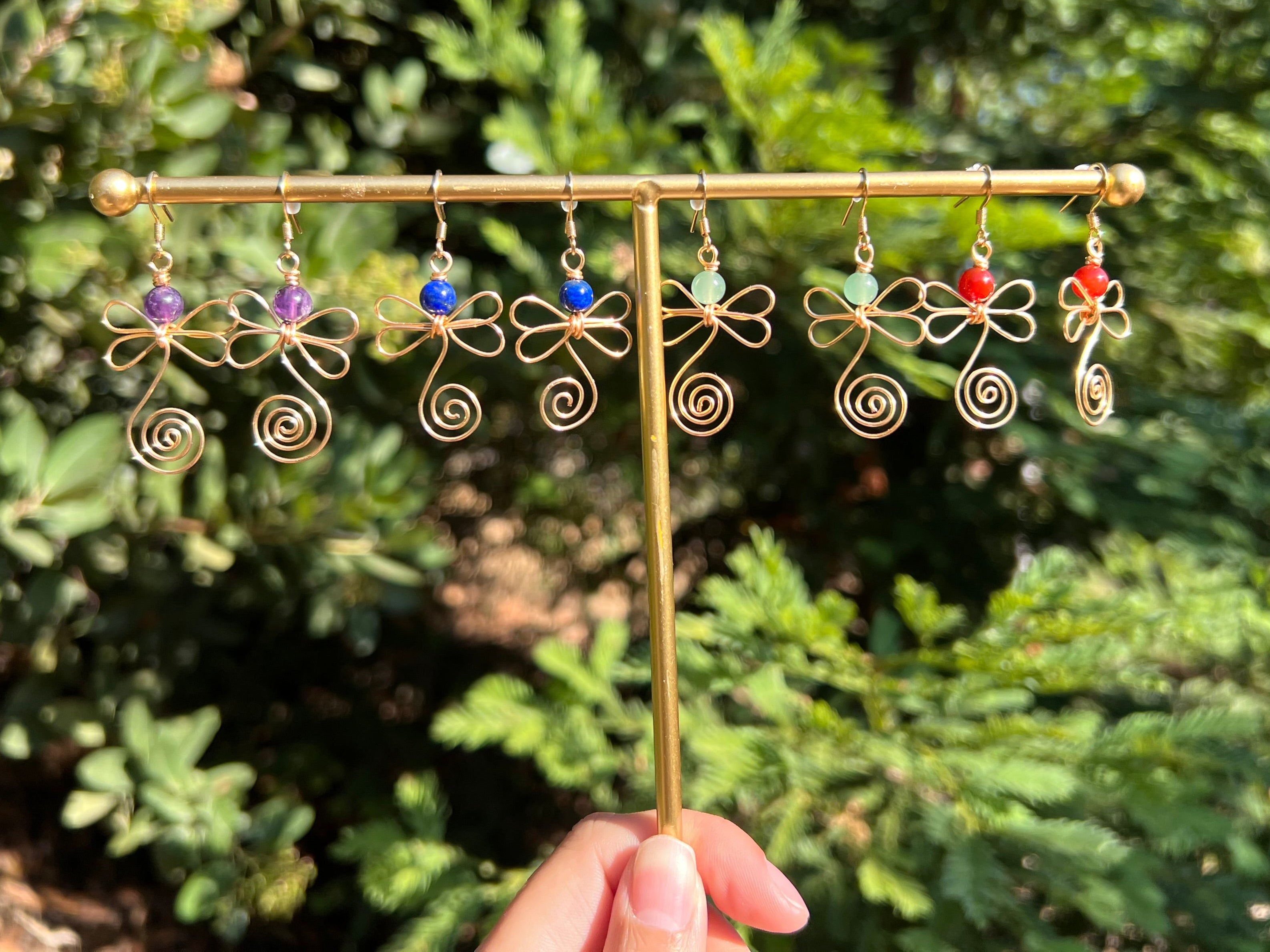 Wire-wrapped dragonfly-shaped earrings! Handmade with luv by me :)