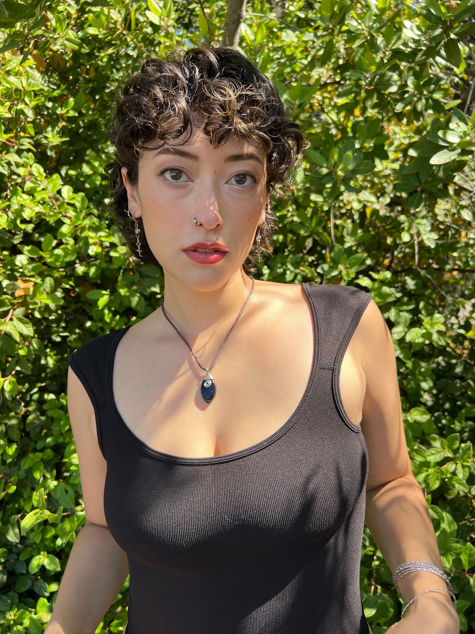 Mystic Marquise Necklace - Black Obsidian (silver cord)