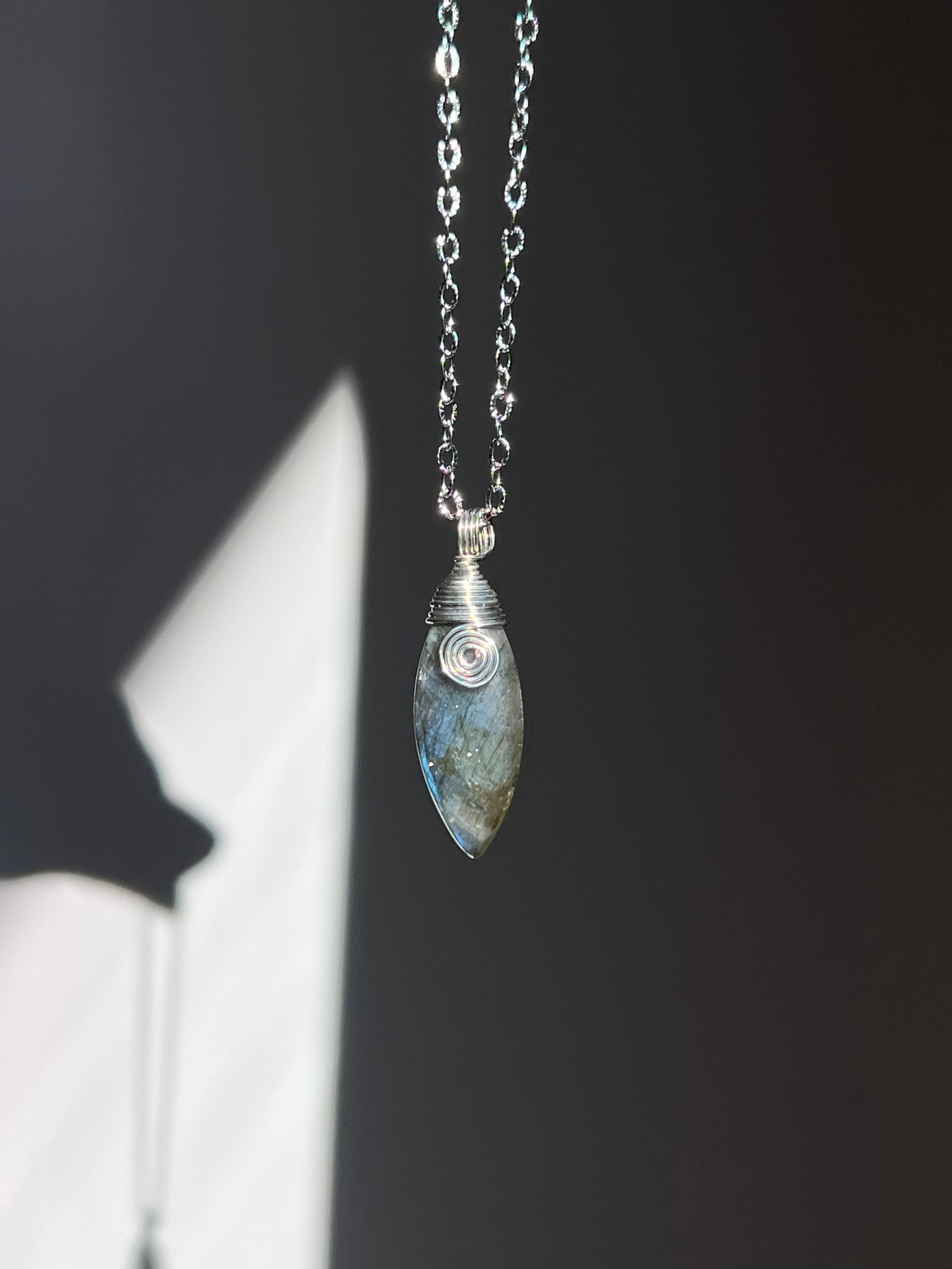 Mystic Marquise Necklace - Labradorite (silver chain)