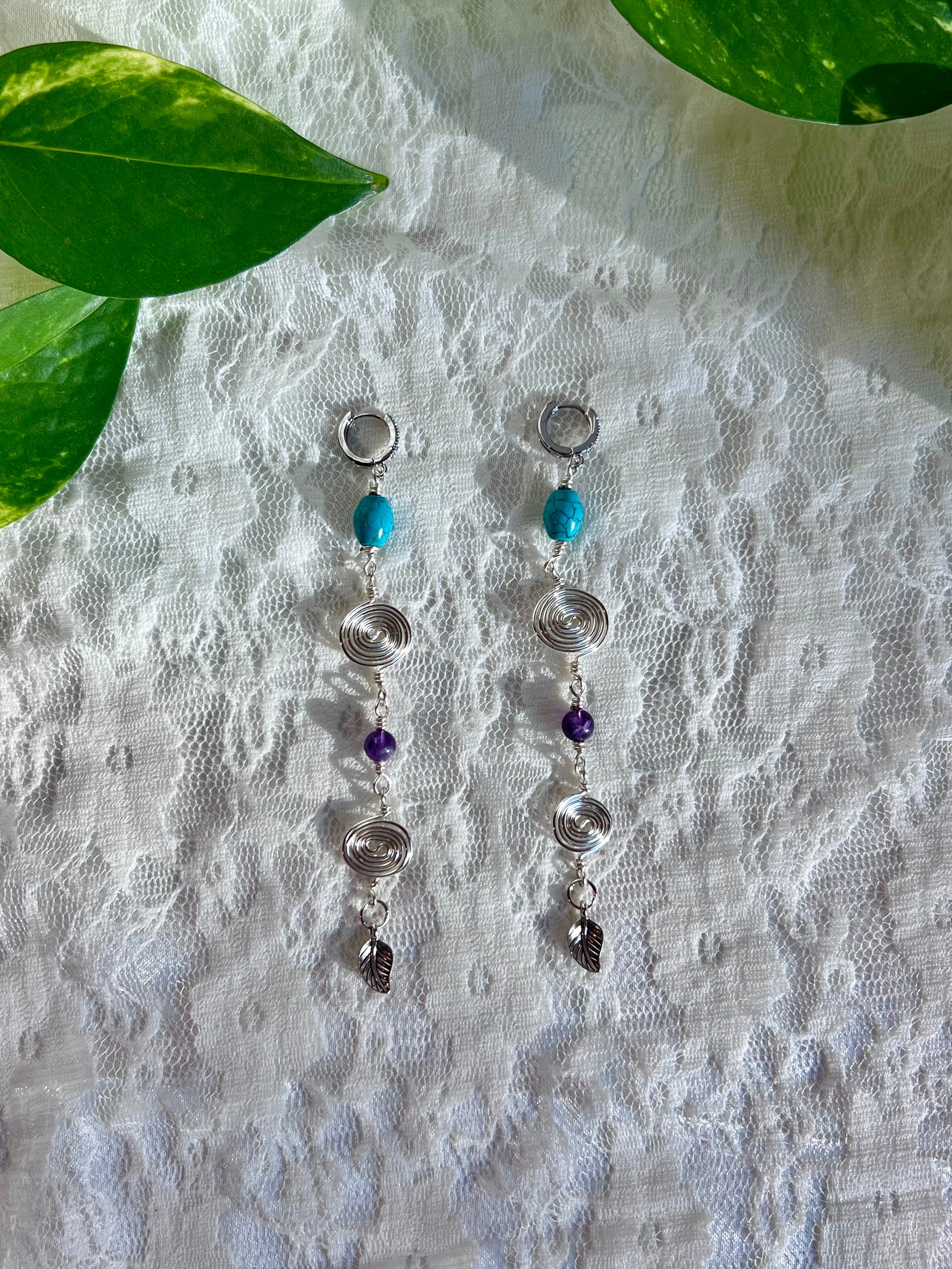 Fall-inspired hypoallergenic huggies made with genuine Turquoise & Amethyst.