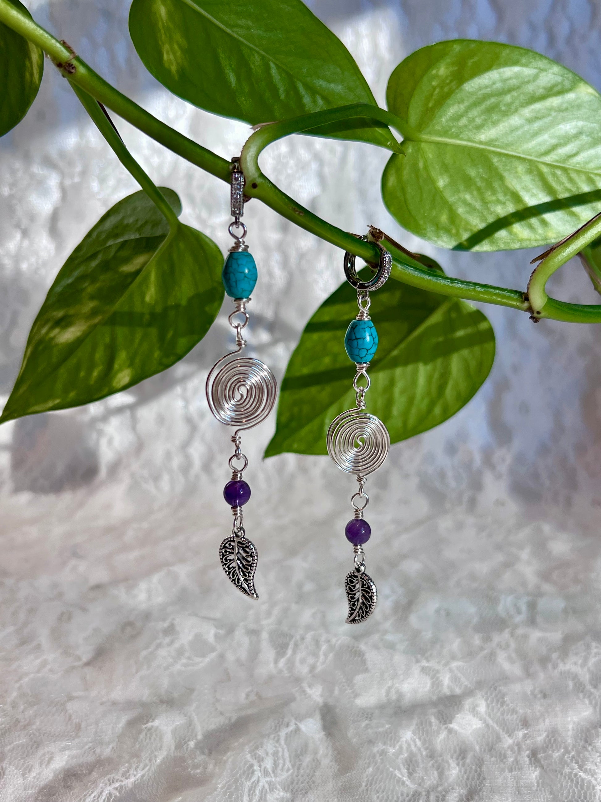 Fall-inspired hypoallergenic huggies made with genuine Turquoise & Amethyst.